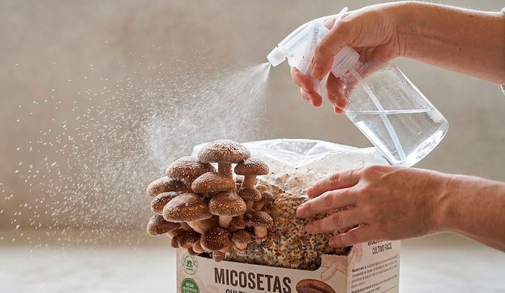 La humedad, en cambio, sí es clave. Las setas necesitan un ambiente húmedo para desarrollarse, por lo que es habitual pulverizar agua regularmente. No se trata de empapar el cultivo, sino de mantener una humedad constante.