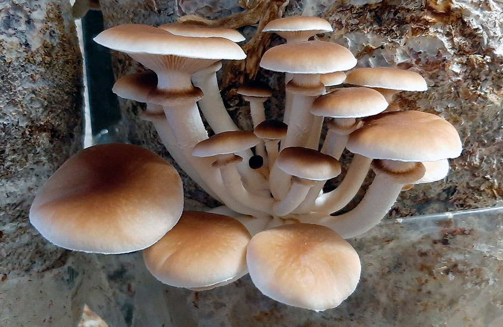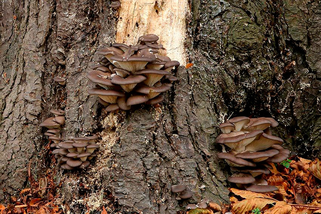 La Pleurotus ostreatus, conocida como seta de ostra, es una de las especies más utilizadas debido a su gran agresividad colonizadora y rapidez de crecimiento. Es especialmente eficaz en maderas blandas o semiduras.