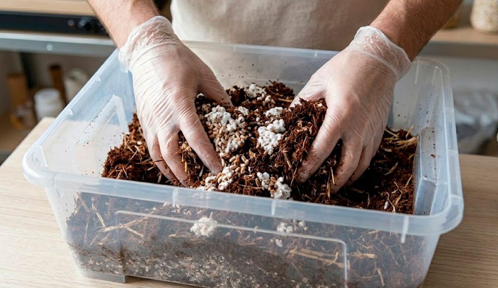 3. Mezclar el micelio con el sustrato