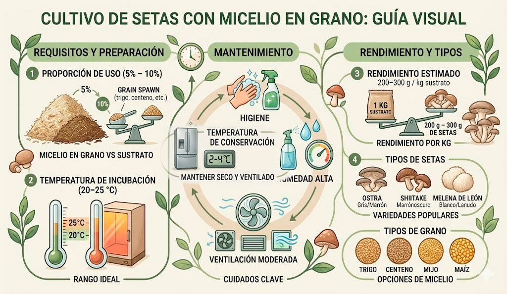 - Cuidados y conservación del micelio en grano